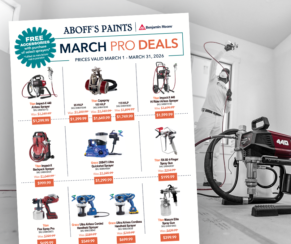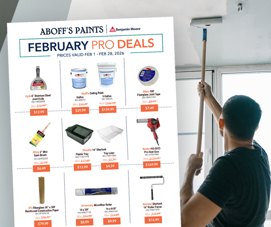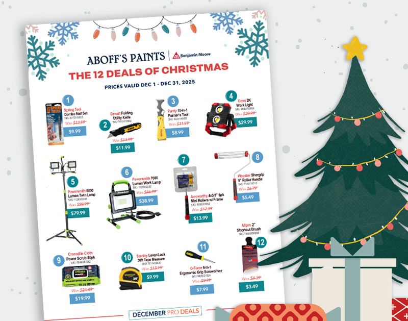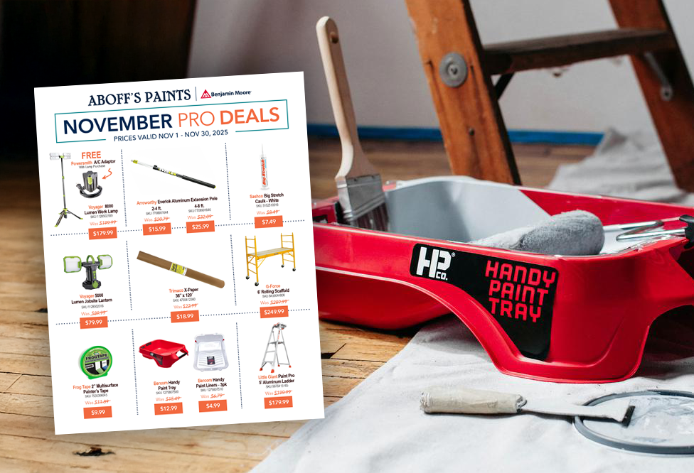 Those who prefer to shop for paint and supplies online can take advantage of our comprehensive catalog right here. Browse all our in-store products and start your project with convenient curbside pickup. Our extensive network of paint stores ensures you'll find an Aboff's close to you, and our handy online resources and Benjamin Moore paint calculator will guide you when planning all the details.